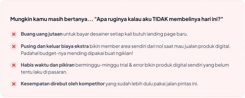 Bagi seorang Pebisnis Online, Internet Marketer, dan Business Owner seperti kamu, INVESTASI untuk aset digital (tools & produk) jauh lebih penting daripada uang yang terbuang untuk trial & error.